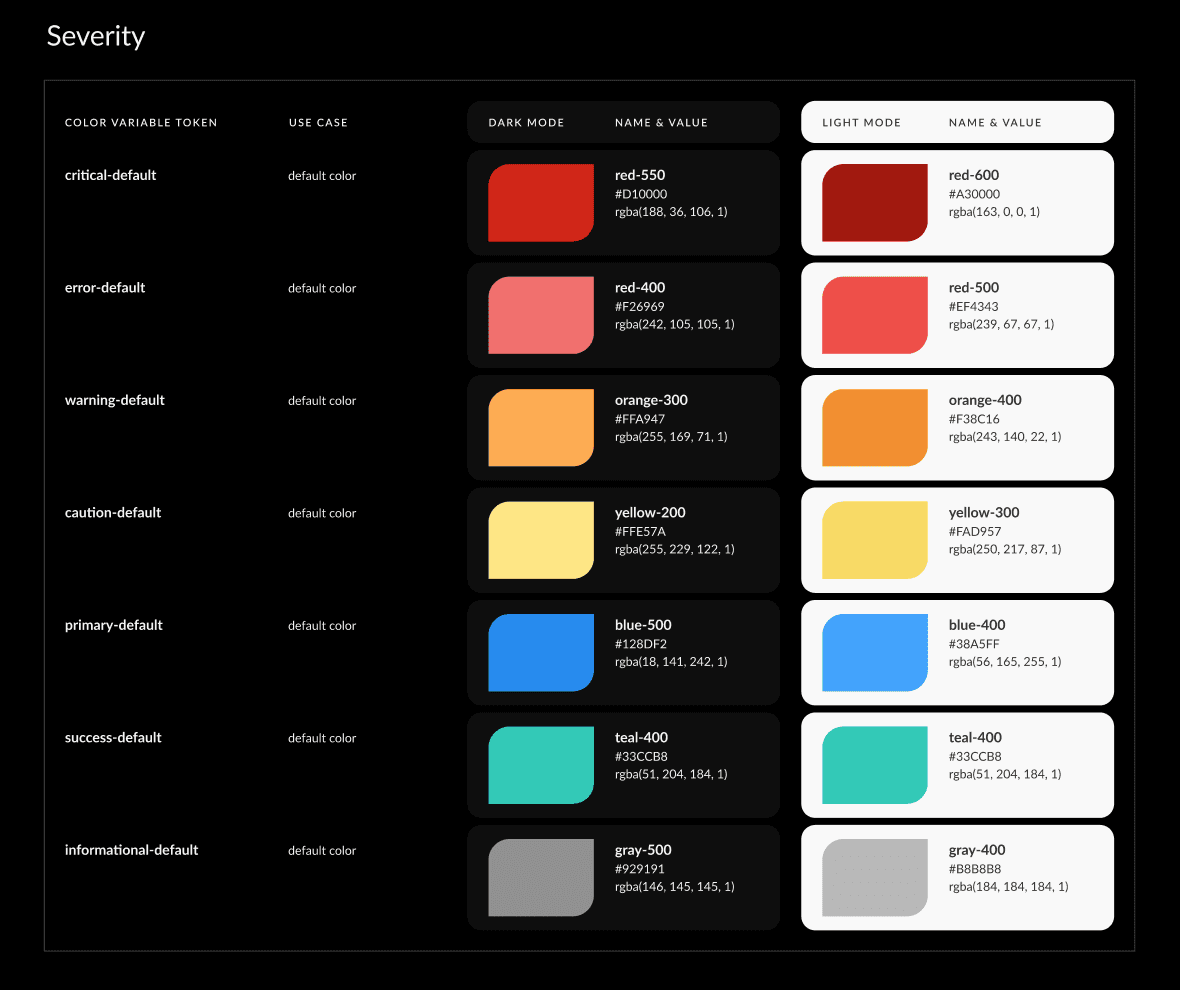 I crafted four seasonal categorical color palette families, harmonizing brand consistency, accessibility (WCAG 2.2), and user customization. I also aligned the severity semantic meaning across a dozen different scales and product use cases.