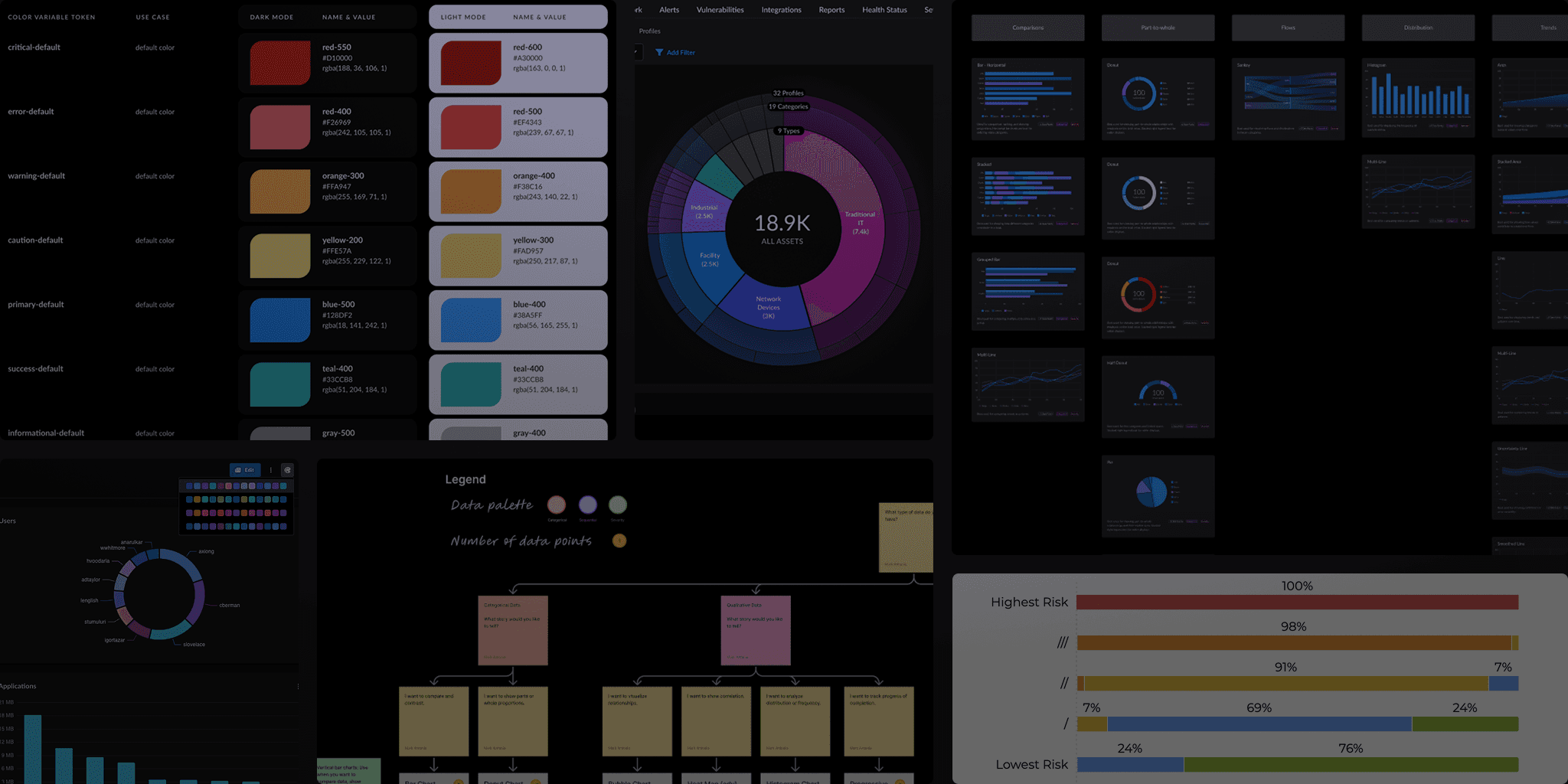 Multiple product teams used bespoke data visualization libraries with overly colorful categorical palettes that conflicted with semantic colors and lacked consistent accessibility standards. An earlier attempt to create a unified library had been deprioritized due to a lack of resources, leaving designers with incomplete beta components that resulted in detached and custom workarounds.