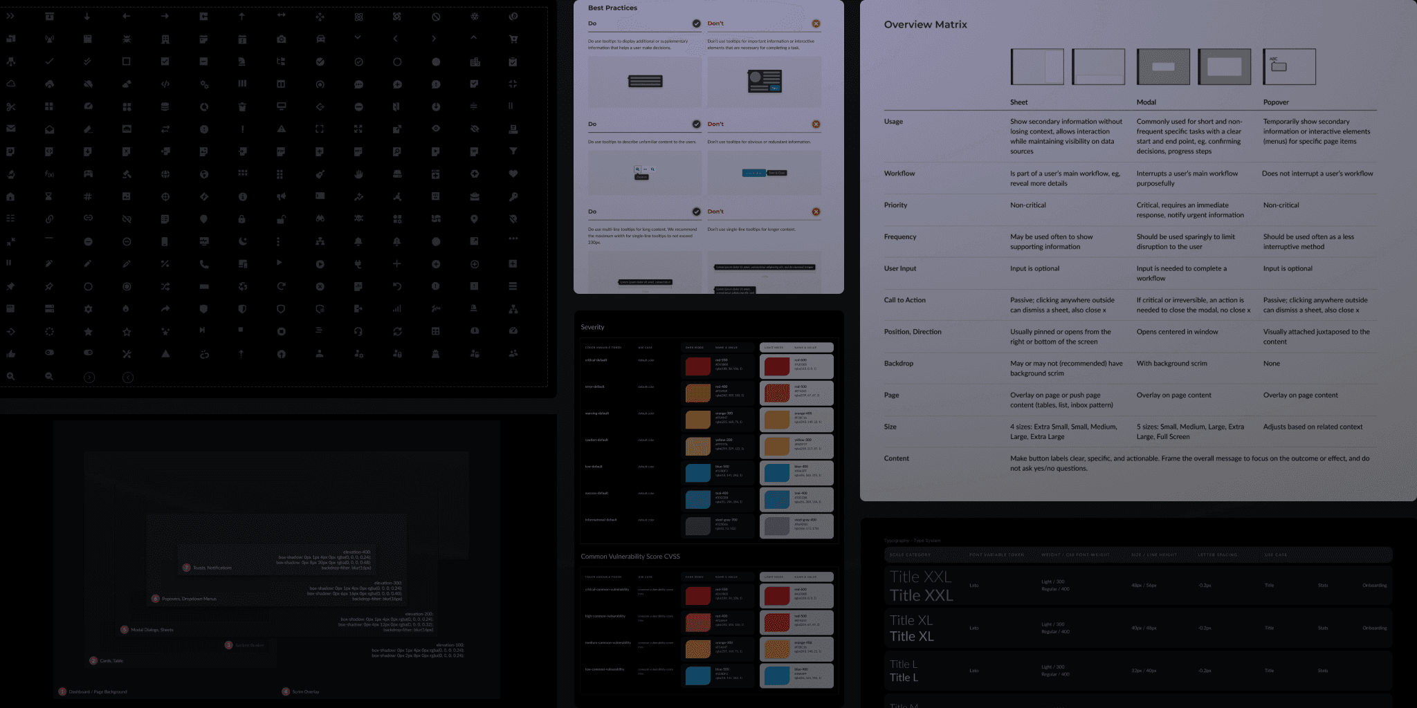 Previously, free and open source icons were used across interfaces. A custom icon set was designed for proprietary use and to differentiate from competitors. I helped direct the overall design of the 300+ icon library and contributed to the maintenance and new additions.